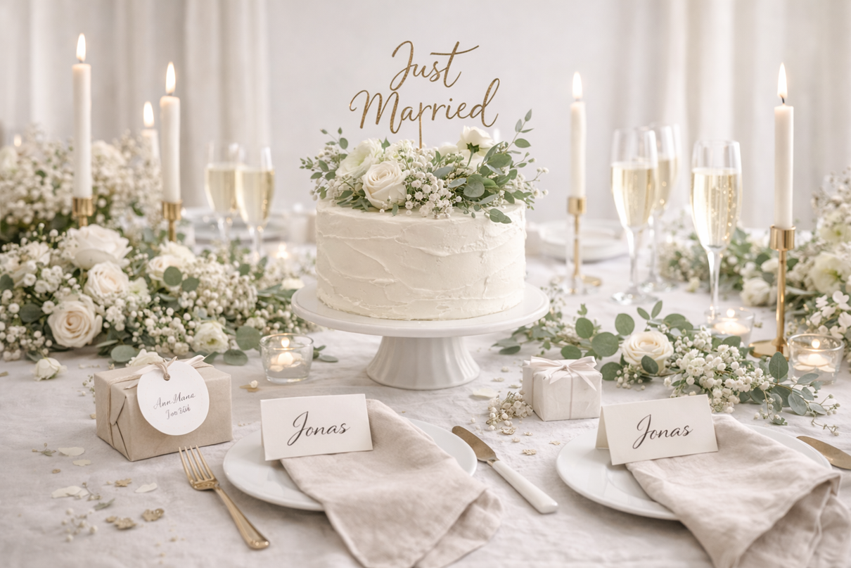 Zeitlose Farbwelten, natürliche Materialien und fein abgestimmte Dekorationen schaffen eine Atmosphäre, die berührt, ohne aufdringlich zu sein. Von eleganten Printables über hochwertige Cake Topper bis hin zu liebevollen Tischdetails entsteht ein harmonisches Gesamtbild – für Feste, die in Erinnerung bleiben.